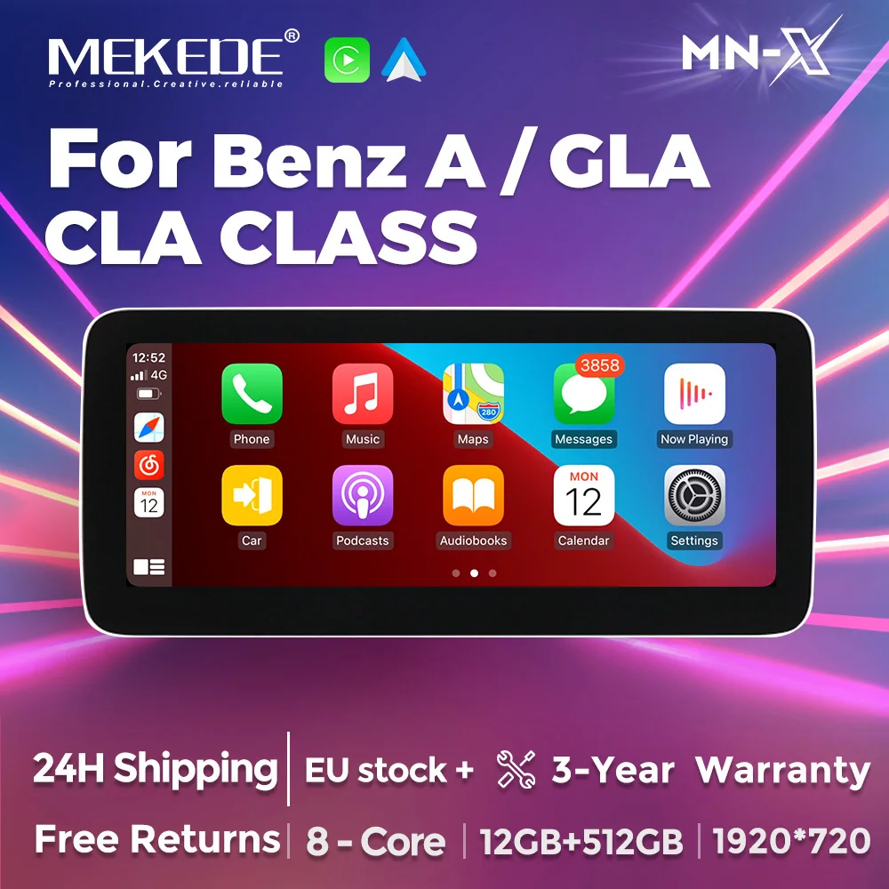 Mekede rádio de carro carplay sem fio para mercedes-benz a/cla/gla classe w176 w118 c117 android 14 sistemas inteligentes de navegação