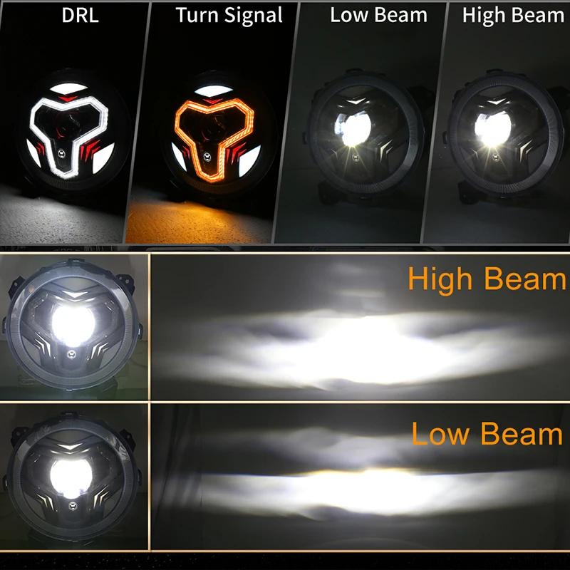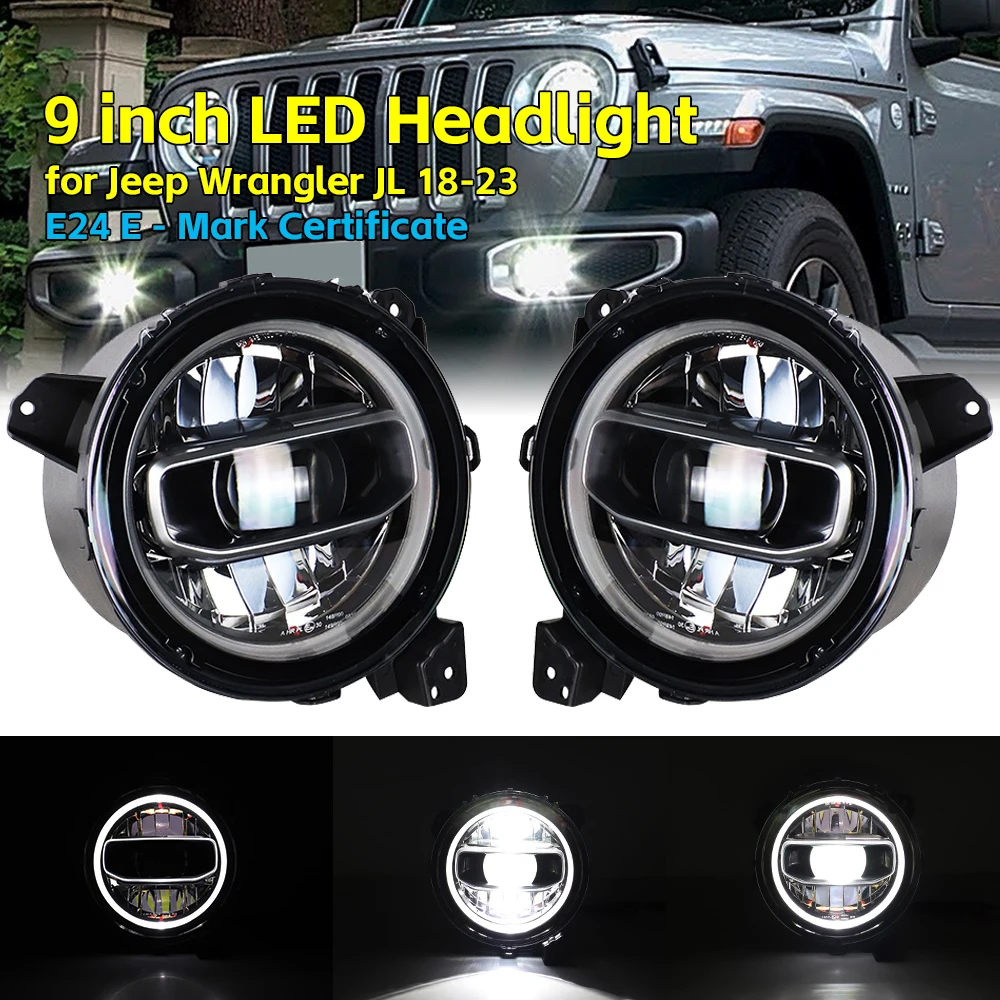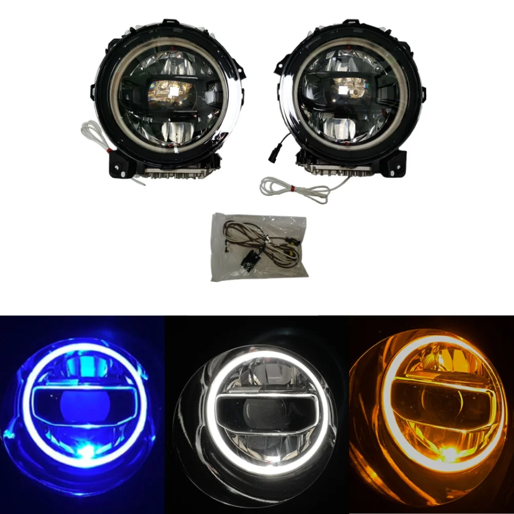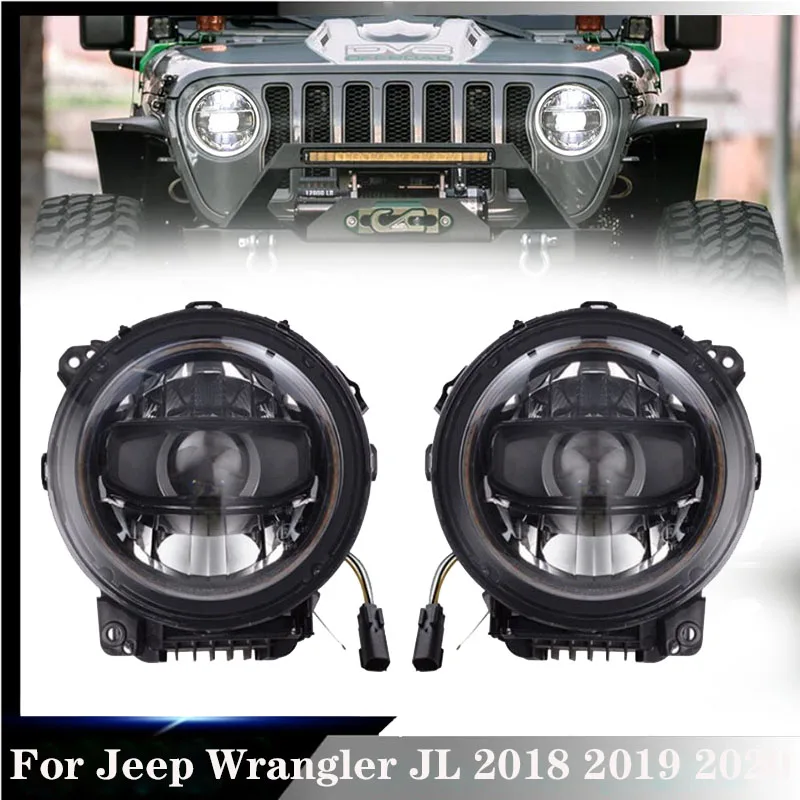Para jeep wrangler jl 2018 + preto liga de alumínio led farol com partida azul sinal volta amarelo branco drl jl1117