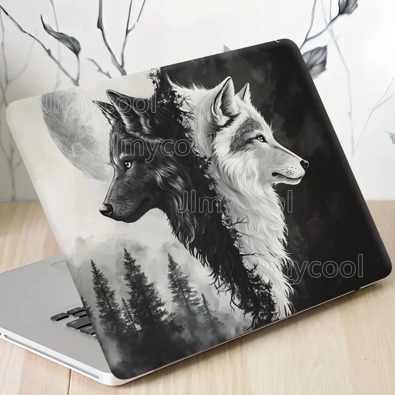 3 Adesivos Duráveis de Vinil para Laptop - Padrão de Lobo com Arte de Pinheiro e Lua Cheia, Adesivo de Proteção contra Arranhões para MacBook, PC, Chromebook