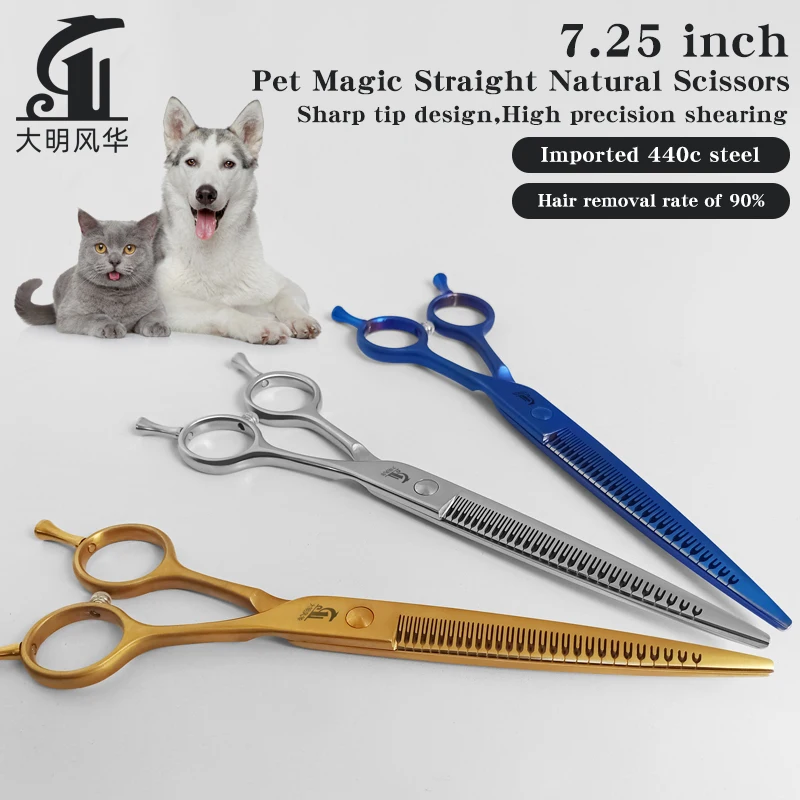 Fenice tesoura de preparação para cães 7 Polegada kits de corte e cabeleireiro para cães em linha reta, mais fina, curvada, chunker e tesoura de preparação natural