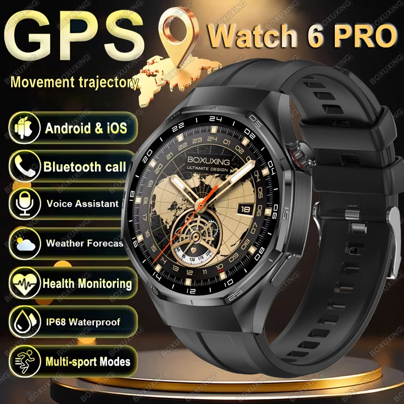Novo Relógio Inteligente Versão Global Watch 6 Pro para Homens com GPS, Esportes, Fitness, Tela HD AMOLED, Chamada Bluetooth, à Prova d'Água e Monitoramento de Saúde