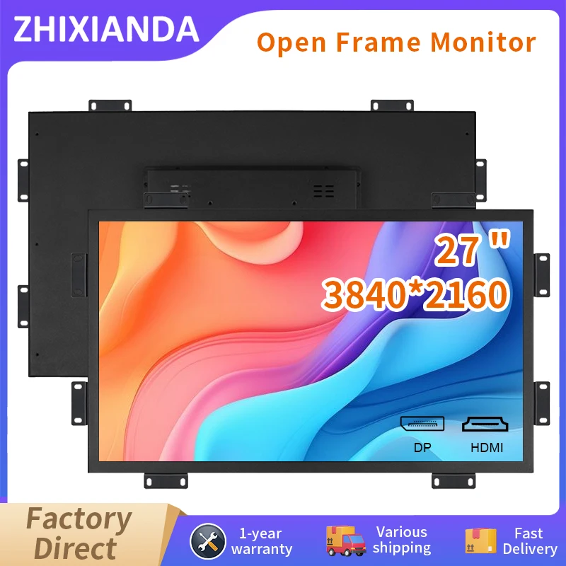 Monitor 4K 3840*2160 Fábrica de alta resolução 27 polegadas LCD Touch Display Monitor de quadro aberto para indústria com interface HD DP
