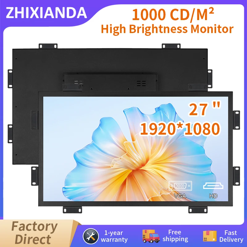 Luz solar legível 1000 lêndeas 27 Polegada 1920*1080 monitor industrial de quadro aberto display de tela de toque capacitivo de alto brilho