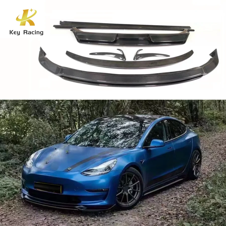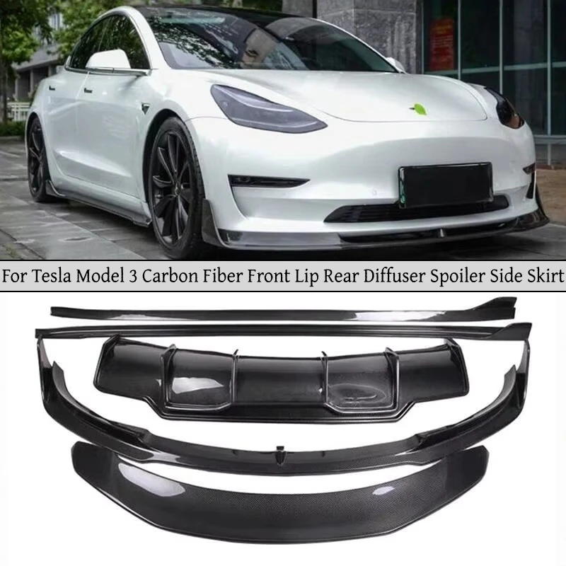 Para tesla modelo 3 v estilo de fibra carbono carro amortecedor dianteiro desviador spoiler difusor lábio dianteiro queixo l estilo atualizado corpo kit