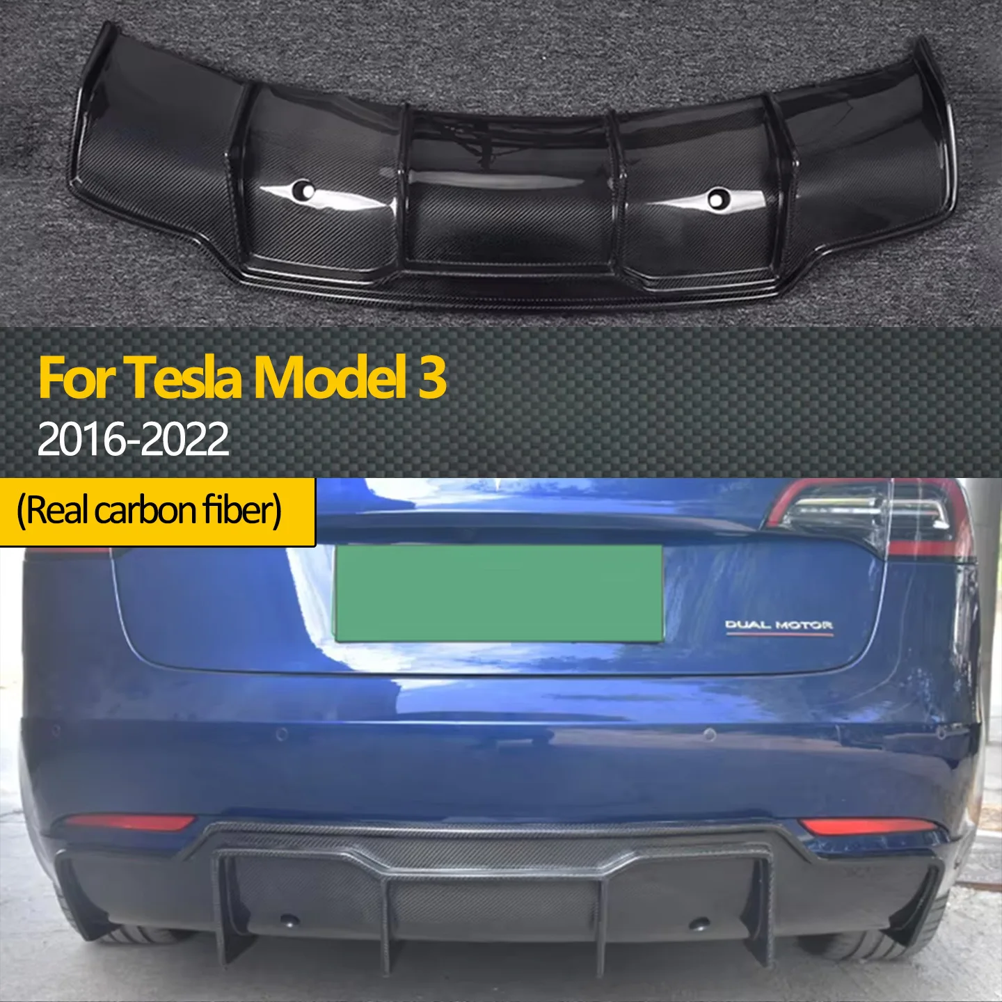 Spoiler traseiro de carro em fibra de carbono real, spoiler para 2016-2022 tesla modelo 3, difusor traseiro, spoiler labial, kit de corpo