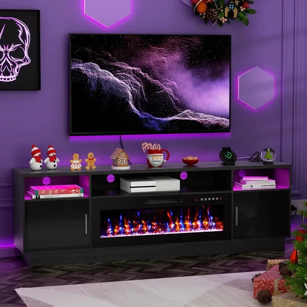 Estação de TV com lareira para centro de entretenimento de 80 polegadas com lareira de 42 polegadas e luzes LED, console de mídia moderno