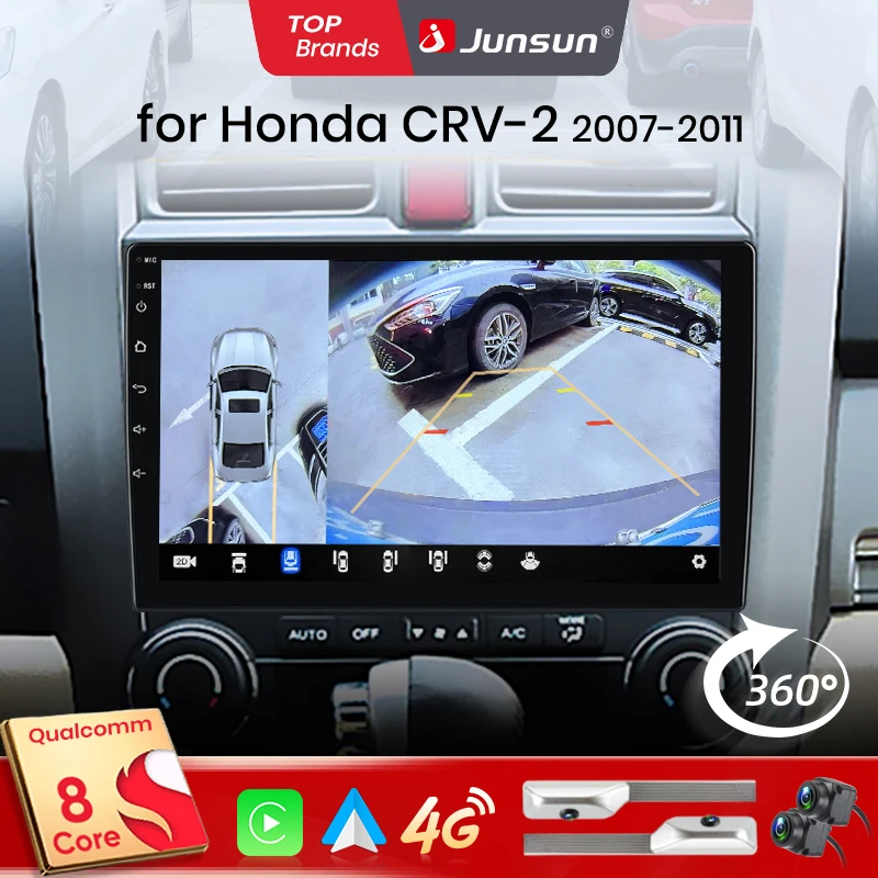 Junsun qualcomm 8 núcleos 360 câmera sem fio carplay android auto rádio do carro para honda CR-V 3 re crv 2007 2008 2009-2011