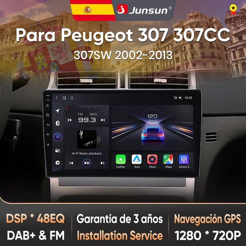 Rádio Junsun com Voz AI para Peugeot 307CC 307SW 2002-2013, CarPlay sem fio, Android Auto, rádio automotivo 2DIN com Bluetooth, DAB+, GPS e RDS.