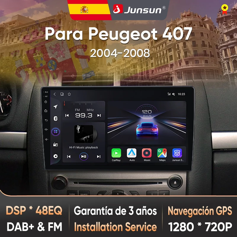 Rádio Junsun com Voz AI para Peugeot 407 2004 2005-2008, CarPlay sem fio, Android Auto, autorádio 2DIN com Bluetooth, DAB+, GPS e RDS