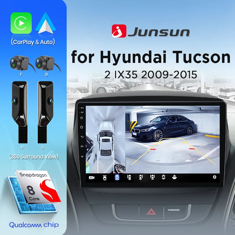 Junsun 360 ° Câmera panorâmica de rádio de carro de 8 núcleos para Hyundai Tucson 2 ix35 2009-2015 CarPlay sem fio Android Auto Stereo GPS Navi