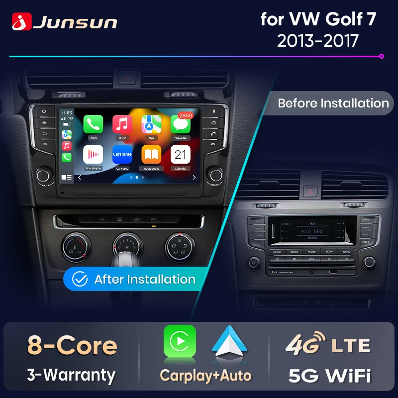 Junsun sem fio carplay android rádio automático para volkswagen vw golf 7 2013-2017 carro multimídia gps bt 2din swc dsp acessórios