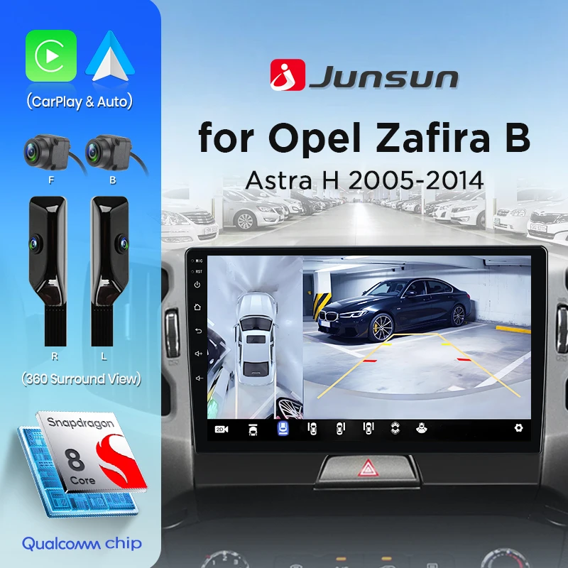 Junsun 360 ° Câmera panorâmica rádio do carro para opel zafira b astra h 2005-2014 tela carplay sem fio android auto estéreo gps navi