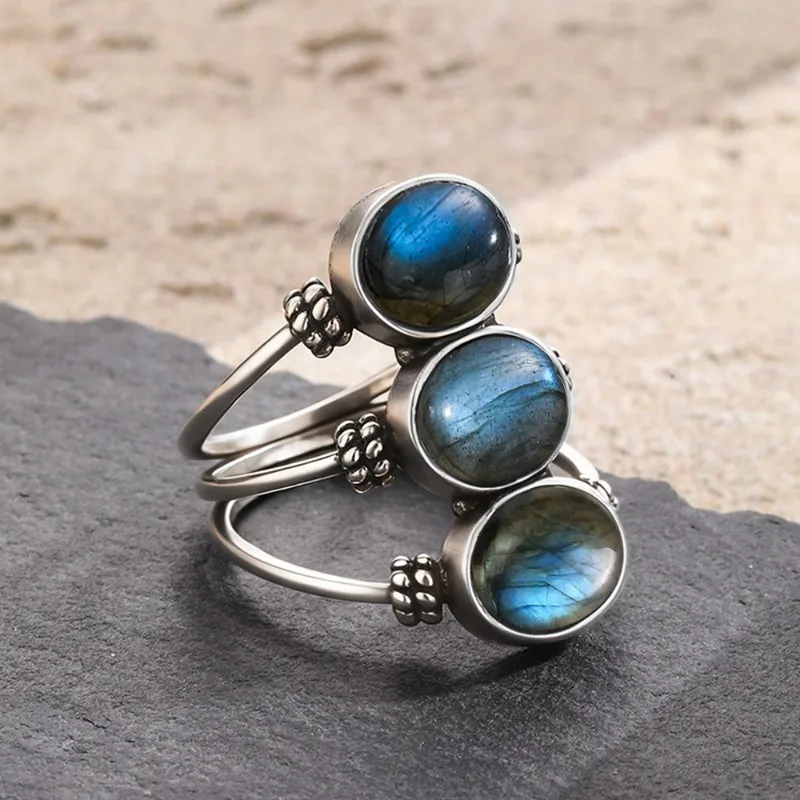 925 prata boêmio multi-pedra empilhados anel natural labradorite/lua pedra azul flash artesanal retro jóias presente para mulher