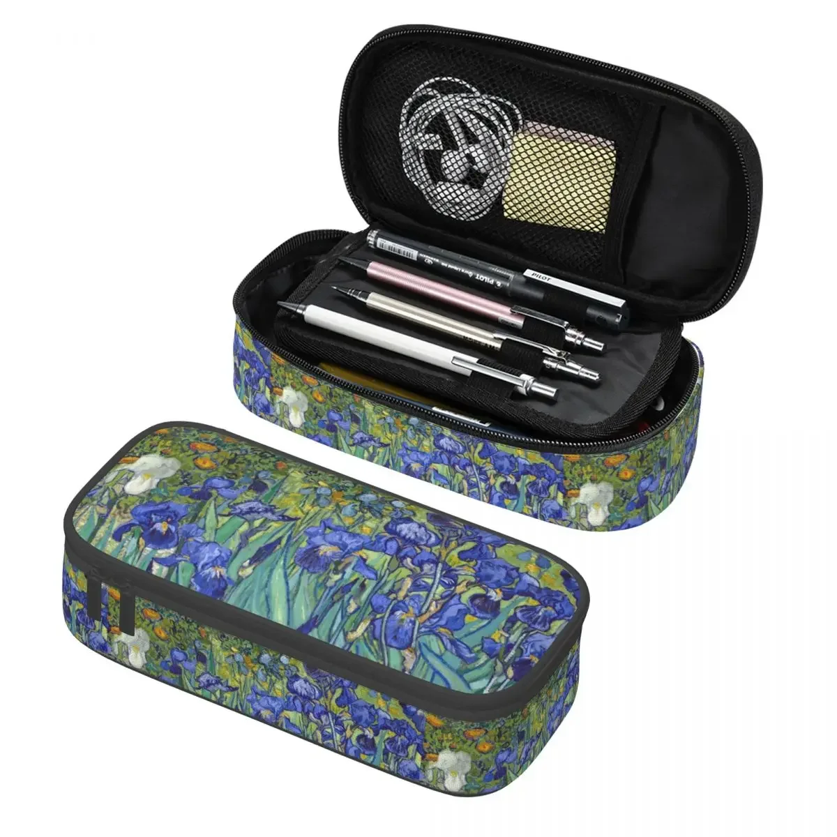 Personalizado bonito íris de vincent van gogh lápis caso para meninos gilrs arte flores pintura grande armazenamento caneta caixa saco material escolar