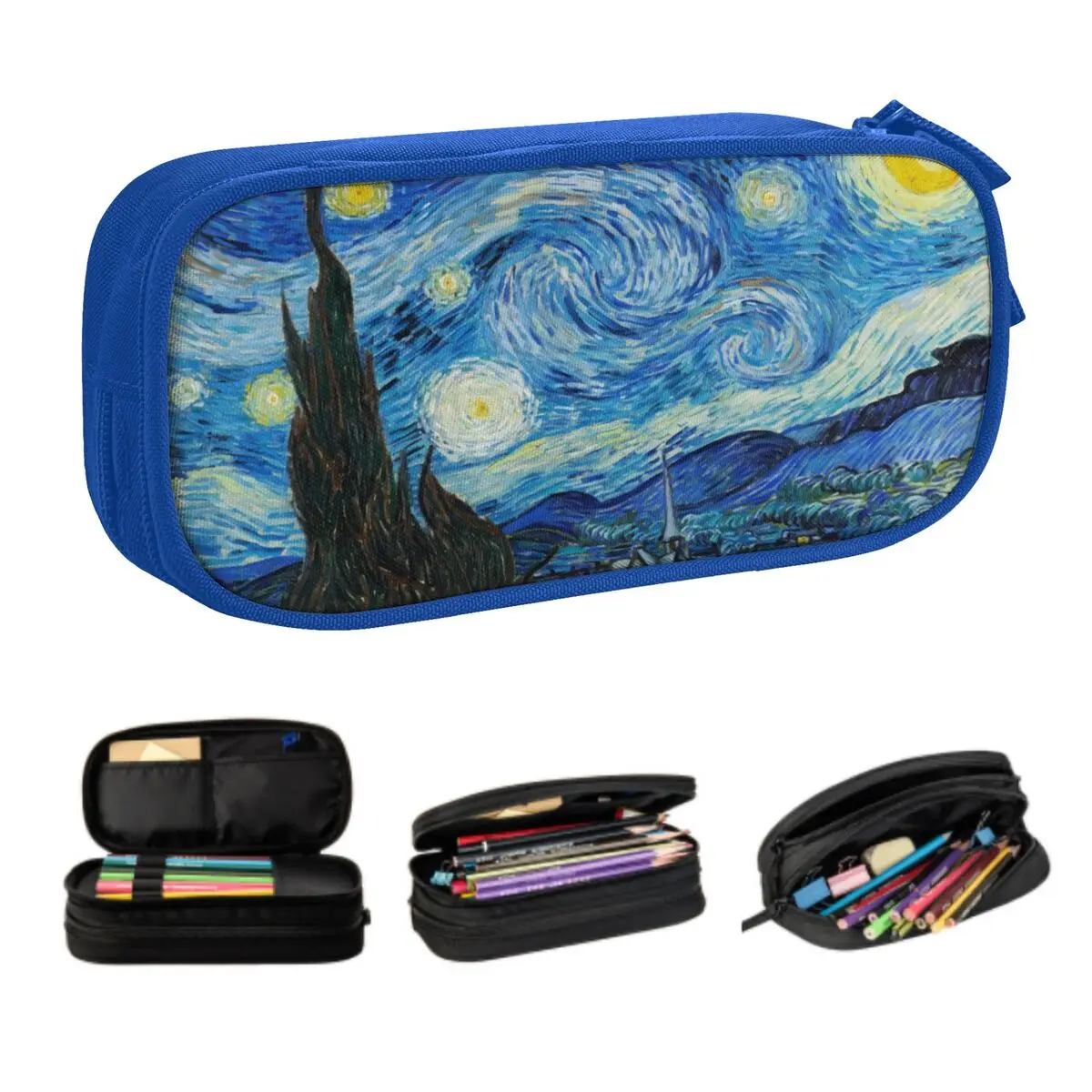 Personalizado coreano vincent van gogh noite estrelada lápis caso para meninos gilrs pintura a óleo arte grande armazenamento caneta saco caixa papelaria