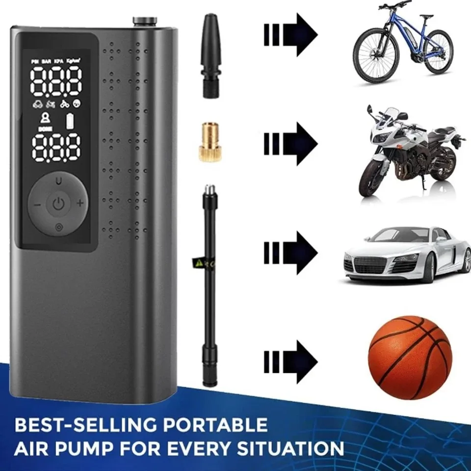 Bomba de Ar Portátil para Carro, Inflador Elétrico de Pneus com Display LCD, Compressor Multiuso para Motocicletas e Bicicletas