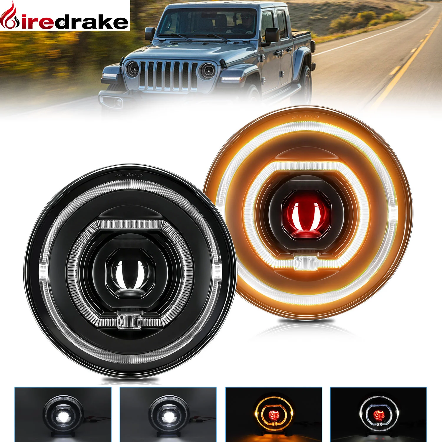 Universal Rodada LED Farol para Harley, Wrangler Farol, Jeep Farol, Super Brilhante, Hummer, 220W, 22000LM, 32V, 7 em