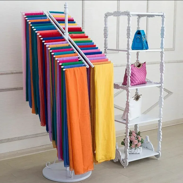 Loja de roupas tieyi cachecol rack tipo chão dupla fileira cachecol xale display quadro pano pendurado rack saco rack economicamente