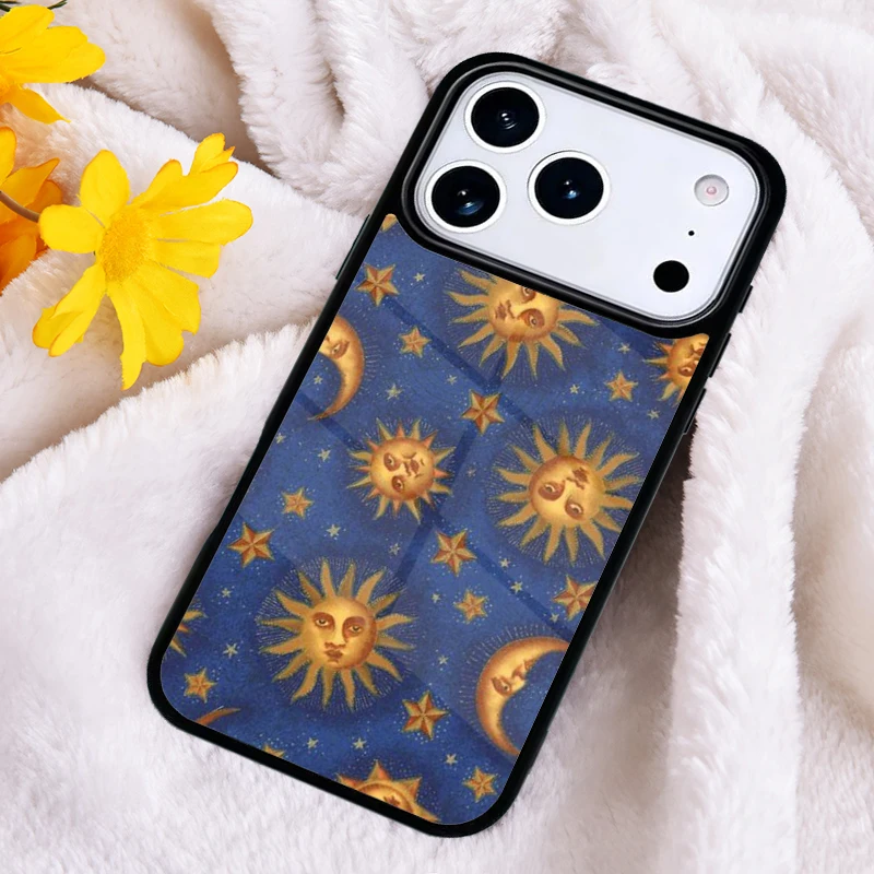 Capa de Celular Estilo Astrológico com Signos do Zodíaco Sol e Lua para iPhone 17 16 Pro Max 15 14 Pro 11 12 13 XR XS 6 7 8 Plus