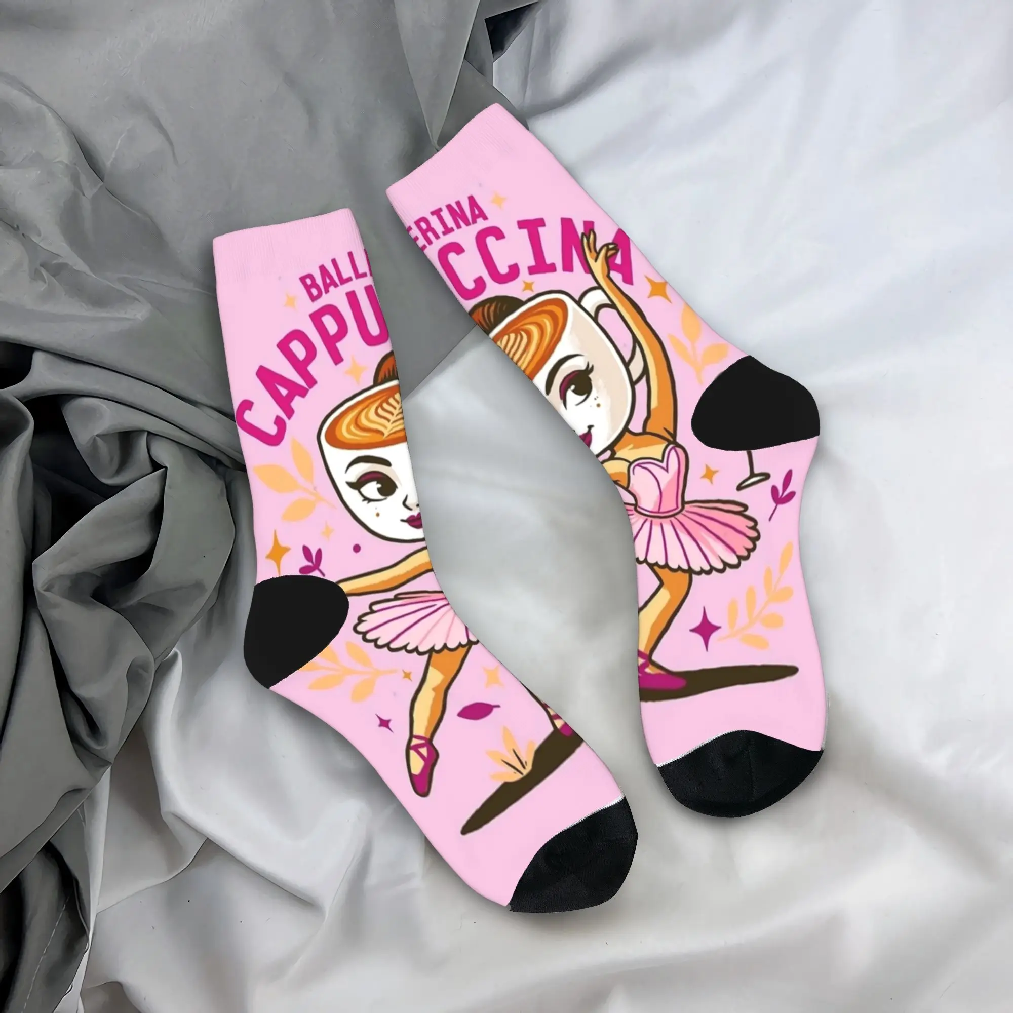 Unissex meias masculinas bailarina cappuccina italiano brainrot bonito personagem meias outono quente macio meias gráficas antiderrapantes