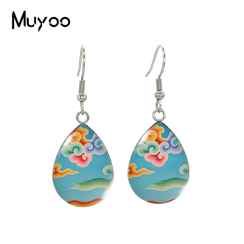 2021 novas nuvens arco-íris lágrima gota brinco arte pintura gancho de peixe brincos de vidro cabochão jóias itens artesanais
