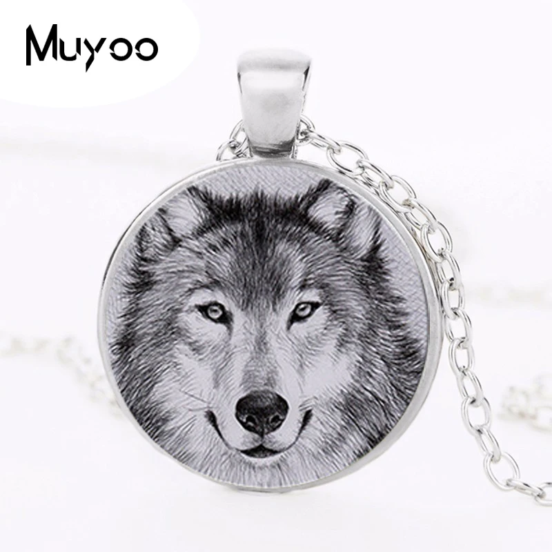 Cinza lobo logotipo pingente colar arte do vintage corrente redonda gargantilha colar de declaração feminino jóias masculino vestido acessórios hz1