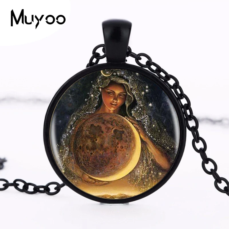 2017 bestsell lua cheia e deusa logotipo pingente colar arte imagem retro cabochão vintage colar feminino jóias hz1