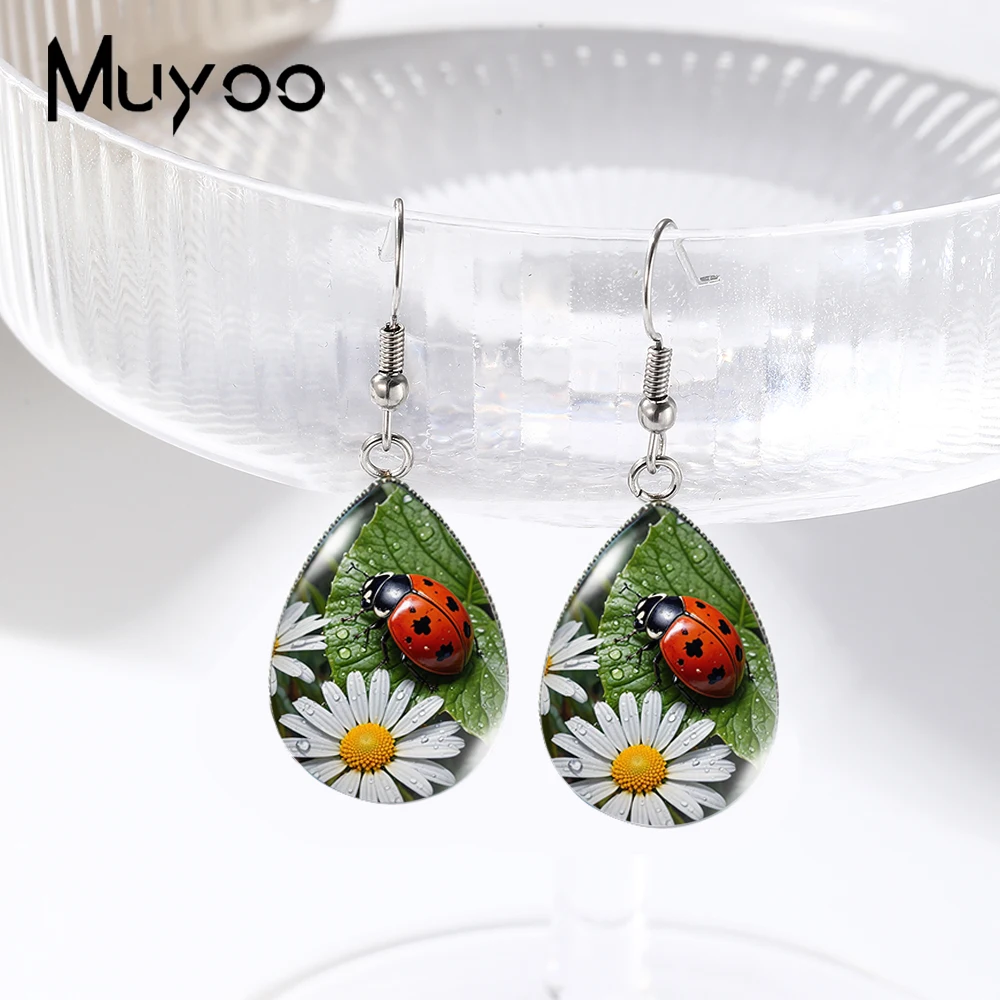 2025 nova joaninha e margaridas lágrima brinco gancho de peixe brinco cúpula de vidro jóias brincos artesanais