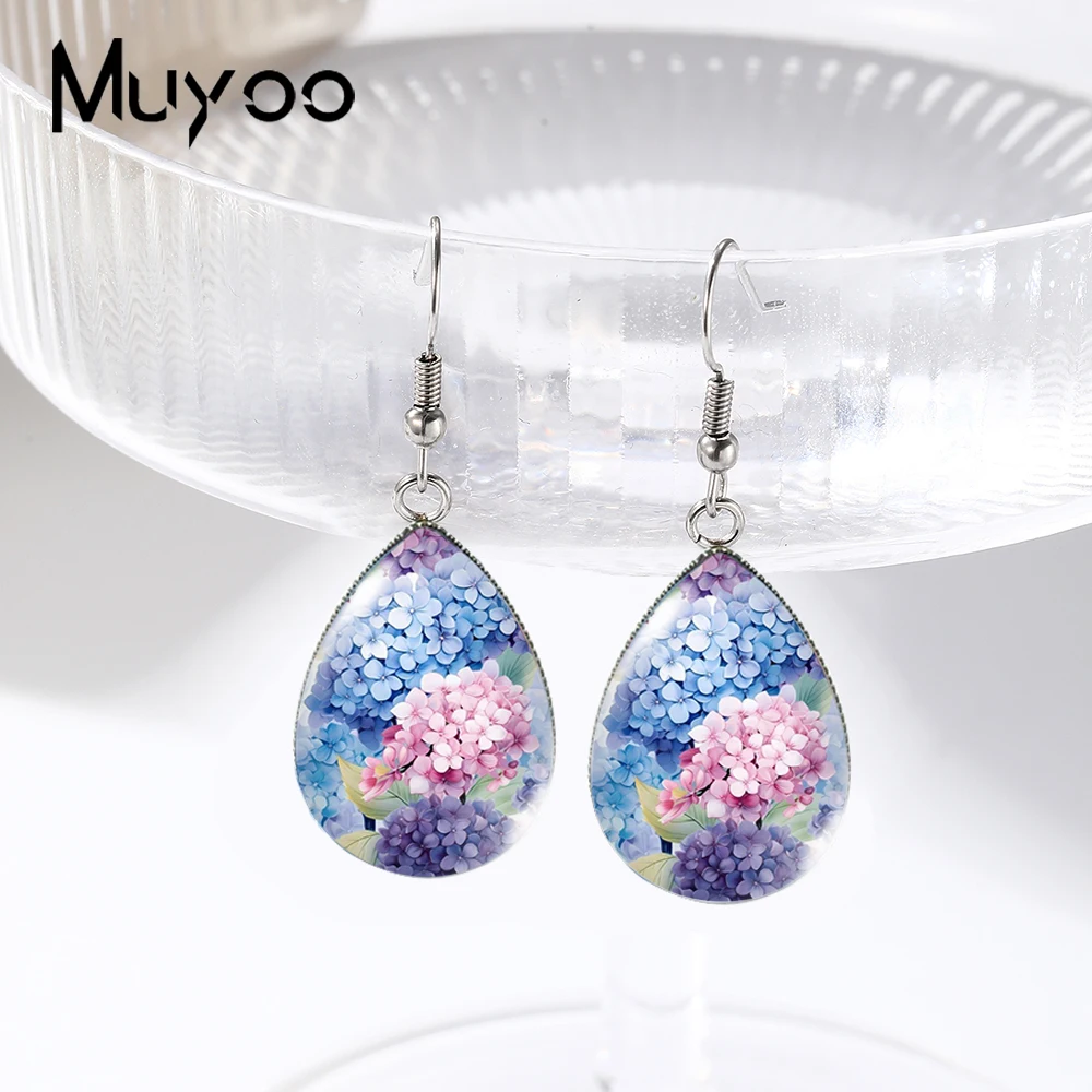 2025 novo rosa azul hortênsia flores lágrima gota brinco gancho de peixe brinco cúpula de vidro jóias brincos artesanais
