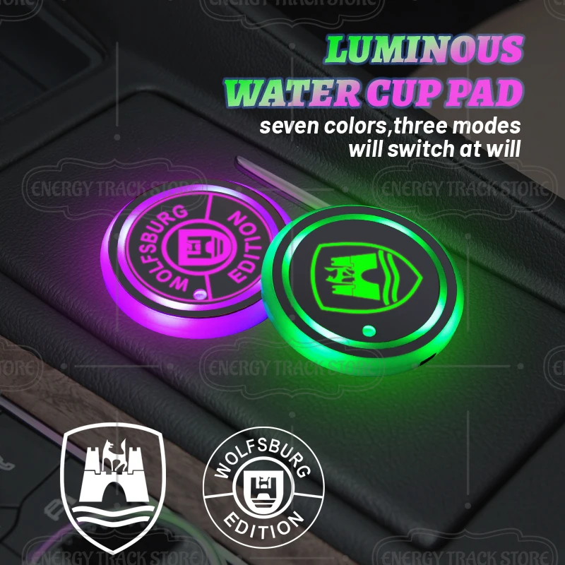 LED Light Water Cup Holder Mat, Coaster do emblema do carro, suporte para copos para golfe, Jetta, Passat, Beetle, Bora, Sharan, Caddy, GTD, 1 pc, 2pcs