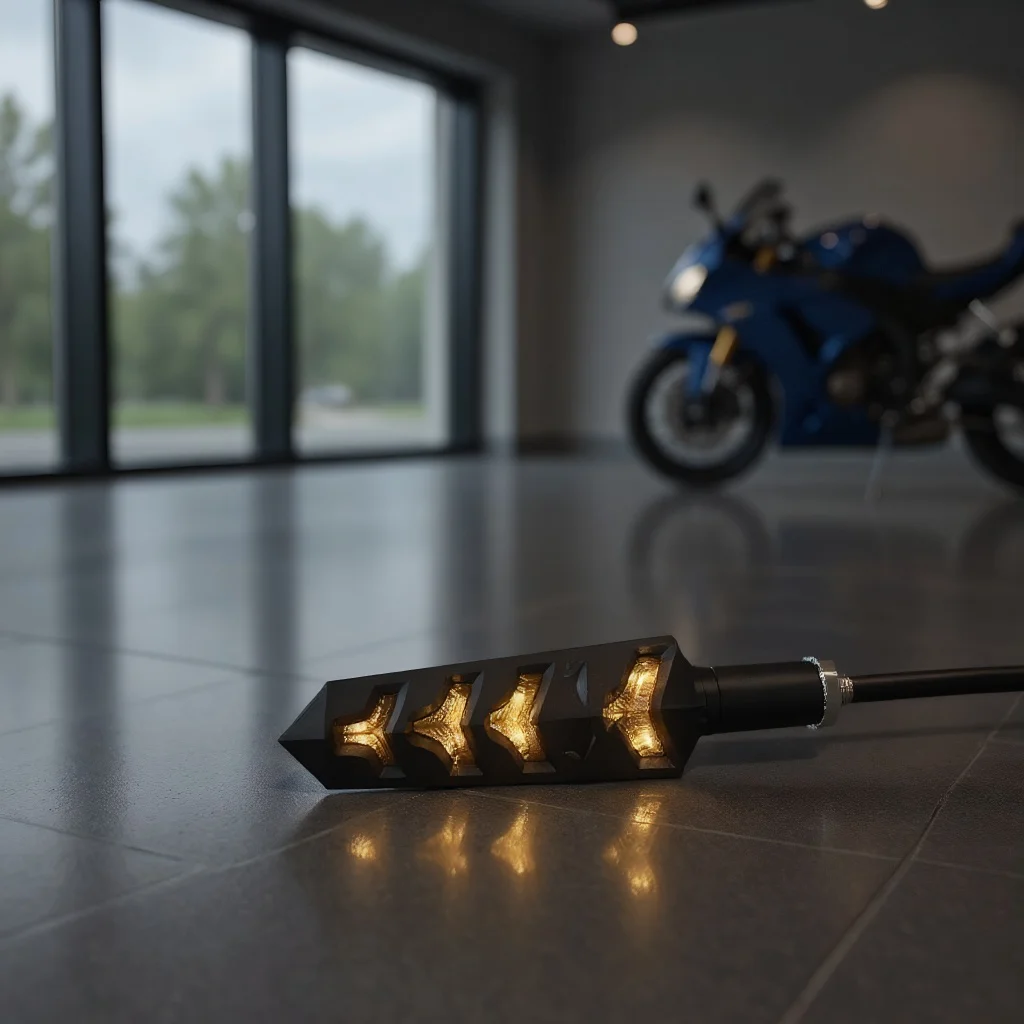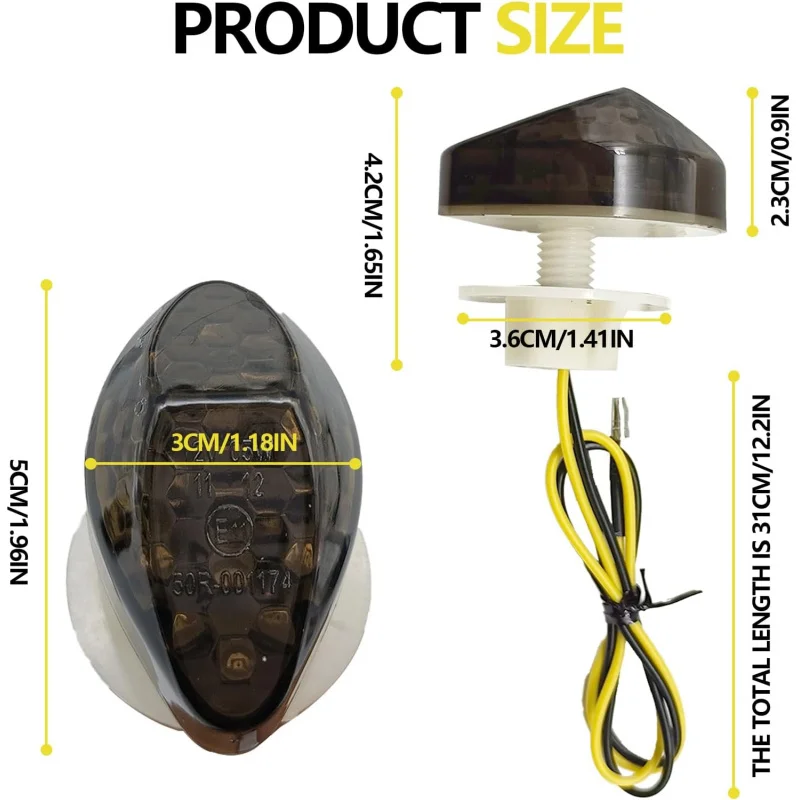 Luz de sinalização em forma de espinha de peixe da moda para motocicleta DC 12V, luz amarela universal