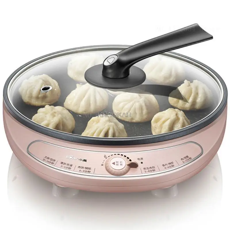 Многофункциональная электрическая форма для выпечки Makers 27 см, кухонные инструменты для приготовления пищи, стеклянная крышка, одинарный противень, высота 3 см, 1000 Вт, розовый