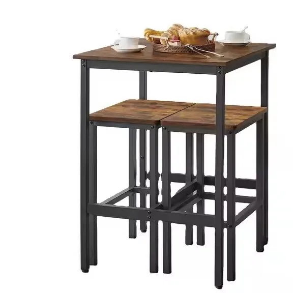 Набор барных столов для отдыха в скандинавском стиле с высоким табуретом, стойкой из массива дерева для домашнего использования, простой дизайн с длинной стеной из железа