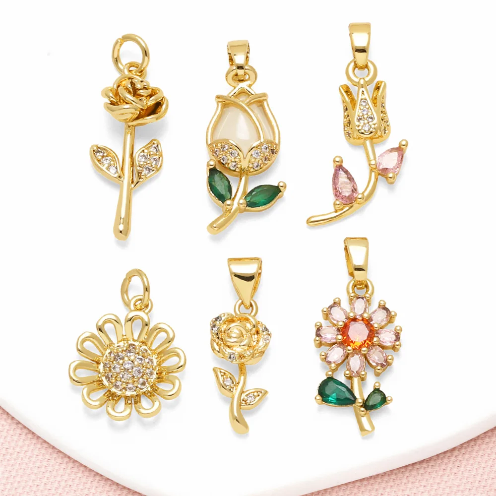 OCESRIO белый кристалл роза ромашка кулон для ожерелья медь позолоченный тюльпан цветок сумка Шарм компонент для изготовления ювелирных изделий pdta636