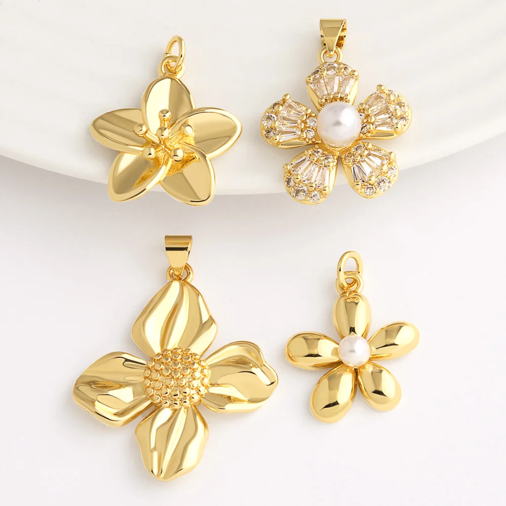 Подвеска OCESRIO в виде цветка из белого искусственного жемчуга для ожерелья, медная, с золотым покрытием, ручной работы, компонент для изготовления ювелирных изделий своими руками pdta165
