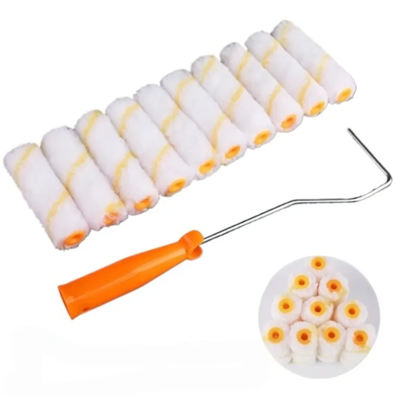 Набор из 11 предметов: Комплект валиков для покраски с длинной ручкой и 4-дюймовыми насадками, идеально подходит для стен, потолков и небольших площадей