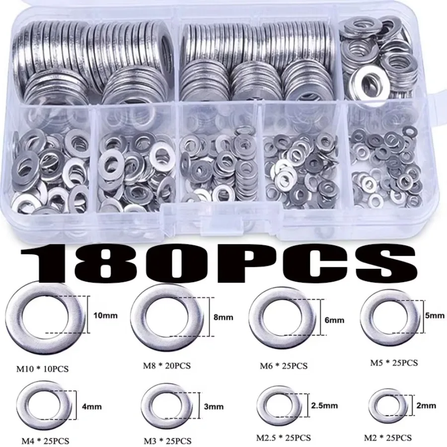 180 шт., уплотнительная твердая прокладка из нержавеющей стали, шайба M2 M2.5 M3 M4 M5 M6 M8 M10, масло пробки поддона для общего ремонта, набор уплотнительных колец