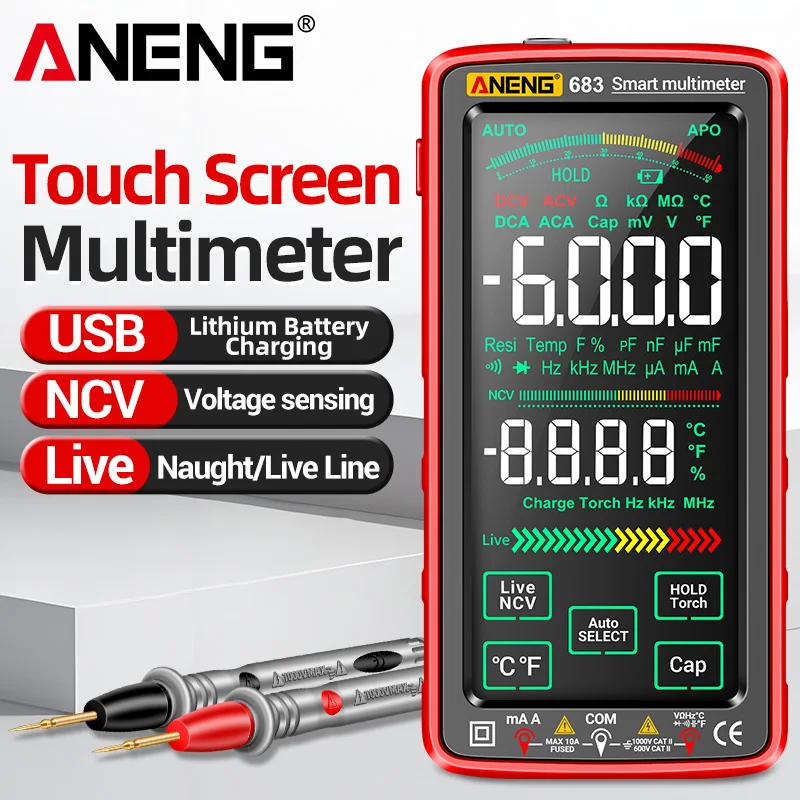 ANENG 683, 6000 отсчетов, профессиональный мультиметр, тест напряжения переменного/постоянного тока, амперметр, умный мультиметр с сенсорным экраном, тест диодов NCV