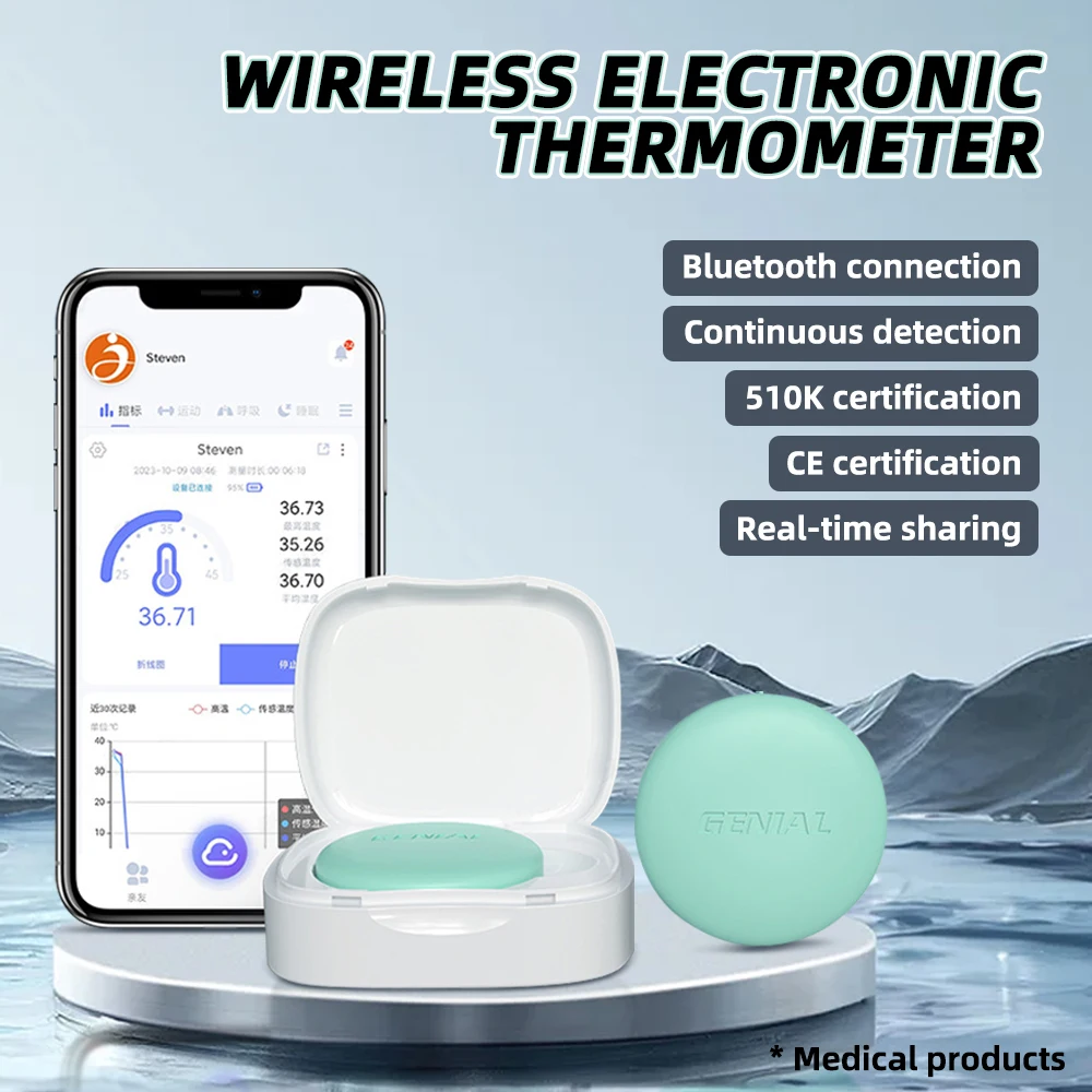 Медицинский беспроводной цифровой термометр, приложение для отслеживания в реальном времени, напоминание о высокой температуре с настольным монитором, использование под мышками