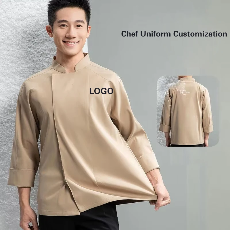 Эластичная водонепроницаемая униформа шеф-повара с длинными рукавами, осенне-зимняя рабочая одежда для отеля и ресторана, куртка с индивидуальной вышивкой логотипа