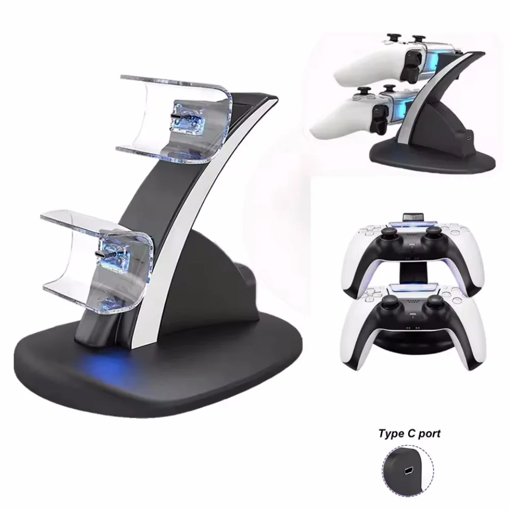 Двойная станция быстрой зарядки для беспроводного контроллера PS5, геймпада, светодиодное зарядное устройство Type-C, док-станция, подставка для PlayStation 5, аксессуары