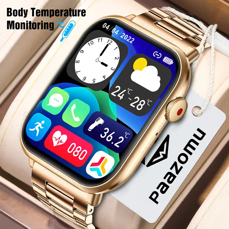 Новые зимние умные часы с монитором температуры тела, 1,96 дюйма, с полным сенсорным экраном, Bluetooth, звонками, спортивный браслет, мужские умные часы
