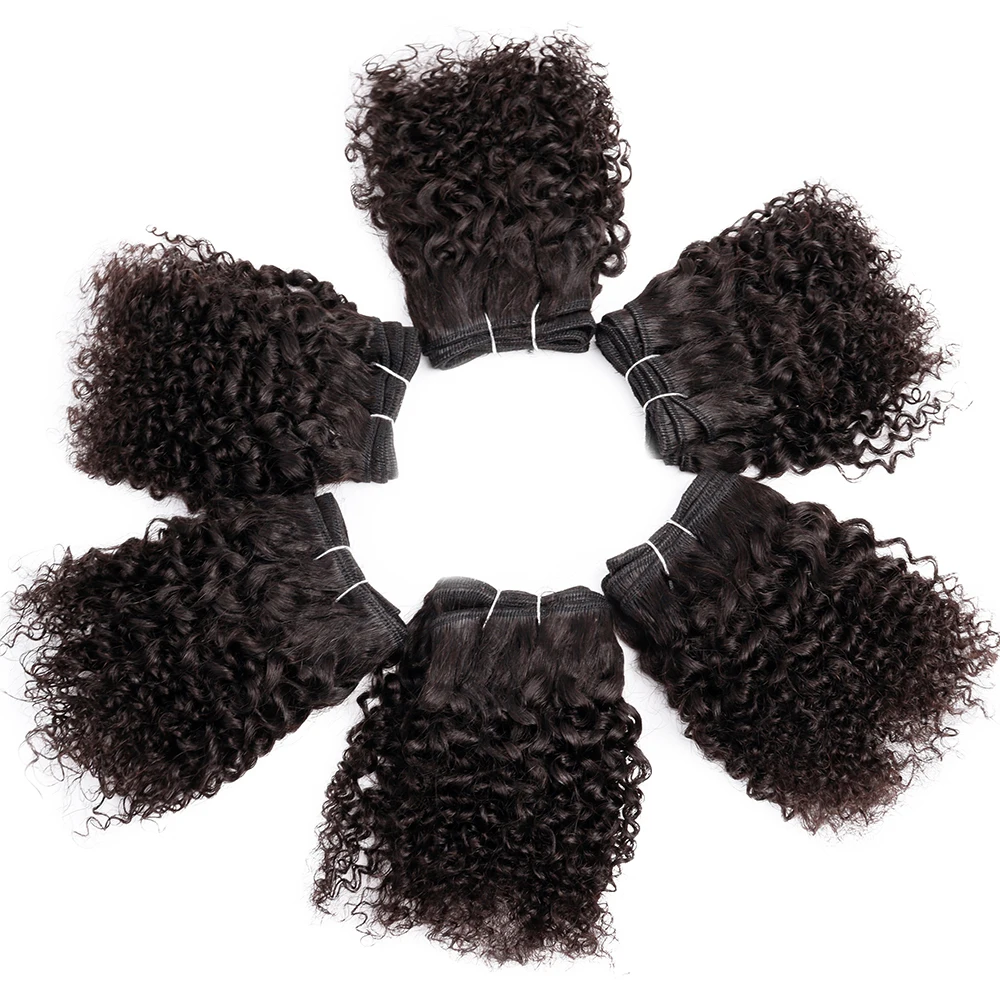 6 шт./лот, вьющиеся человеческие волосы, пучки, цвет Омбре, бразильские волосы, волнистые пучки, короткие человеческие волосы Remy, вьющиеся пучки для женщин