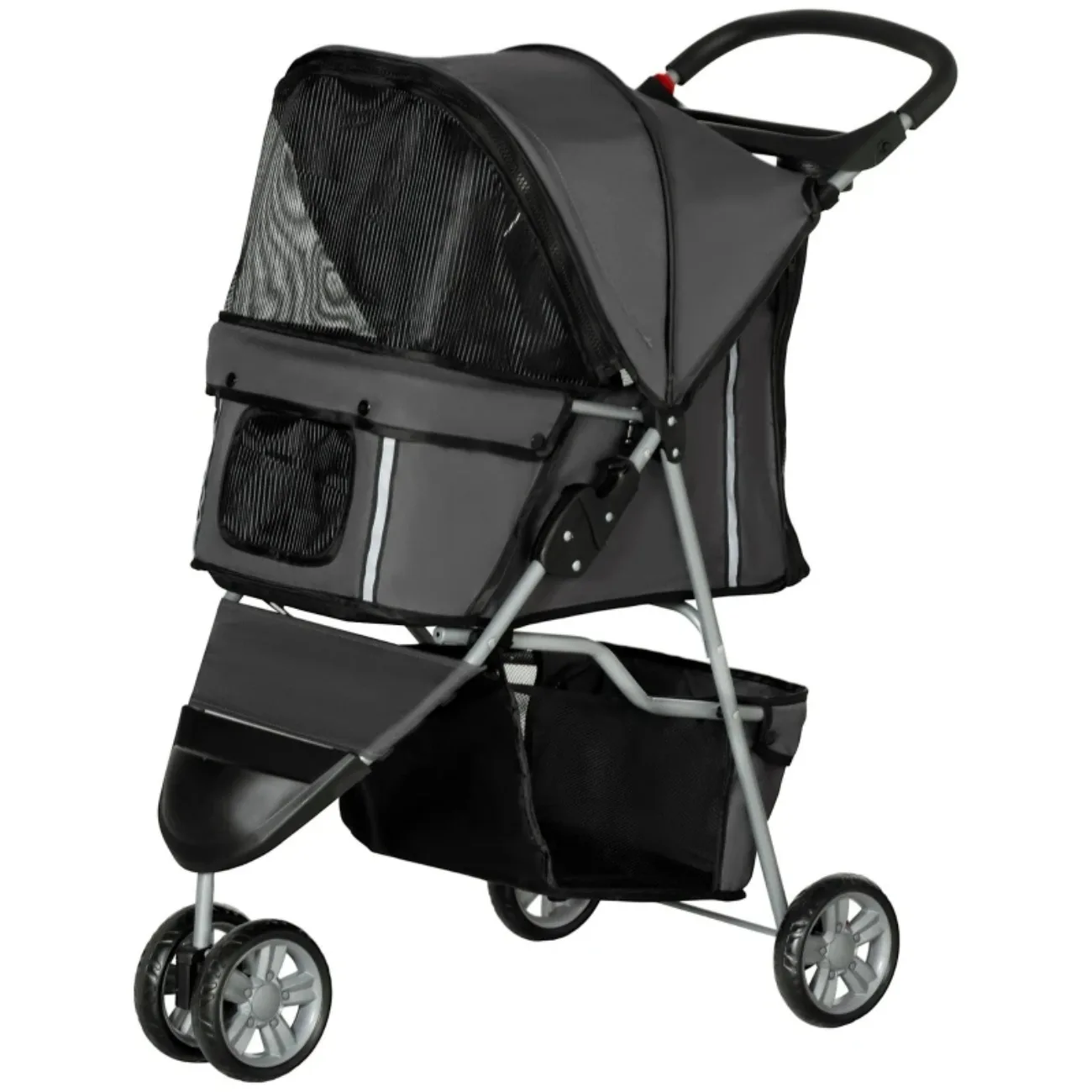 Кофейно-коричневая коляска для животных – складная, грузоподъемность 10 кг, 77x44x102 см, светоотражающие элементы, сумка для хранения и мягкая подушка