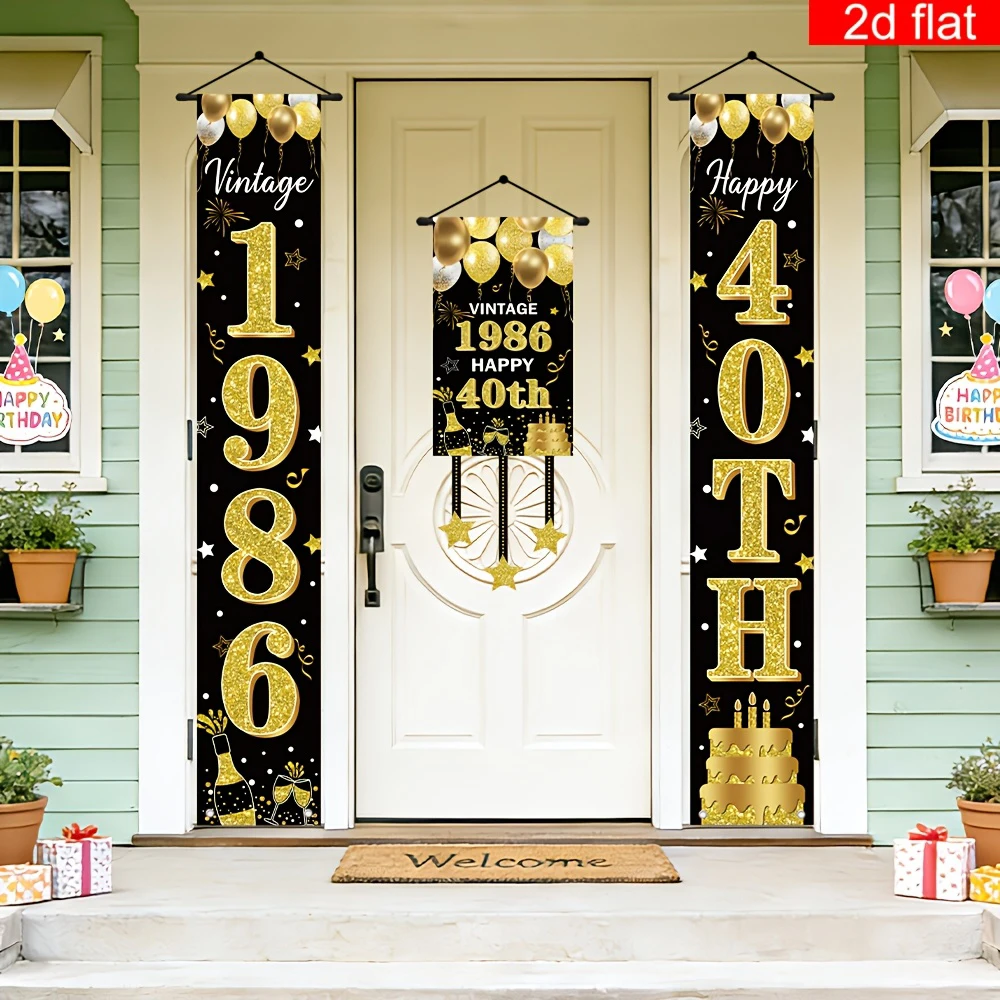 2D плоский баннер на 40-летие, 3 шт., черно-золотой, из прочного полиэстера, для подвешивания внутри и снаружи помещений, для двора, гаража, дома, вечеринки