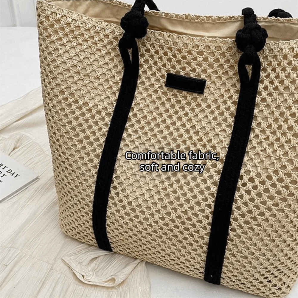 Большая соломенная пляжная сумка-тоут, водонепроницаемая складная корзина для пикника, сумка в стиле бохо с внутренним карманом для путешествий, покупок