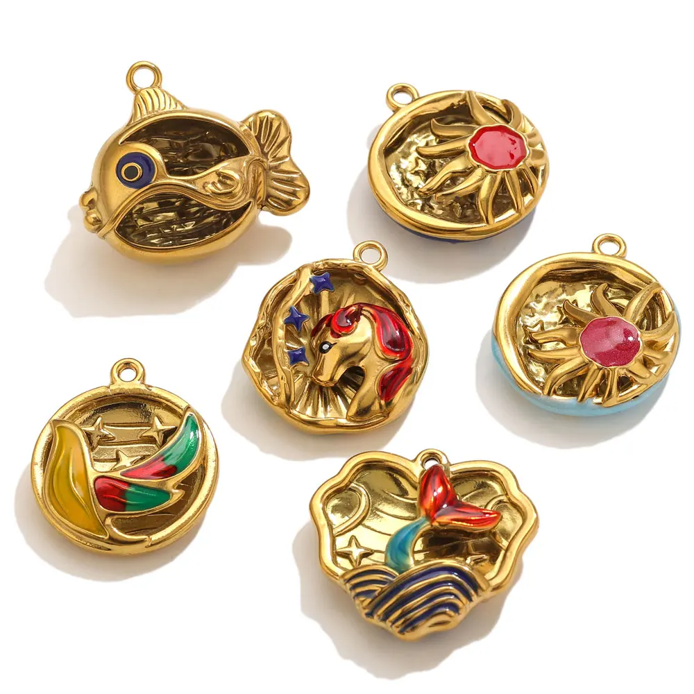 1 шт., 3D эмалированные подвески в виде единорога из нержавеющей стали для ювелирных изделий, ожерелья, подвески, сделай сам, птица, солнце, рыба, полые подвески, ювелирные аксессуары