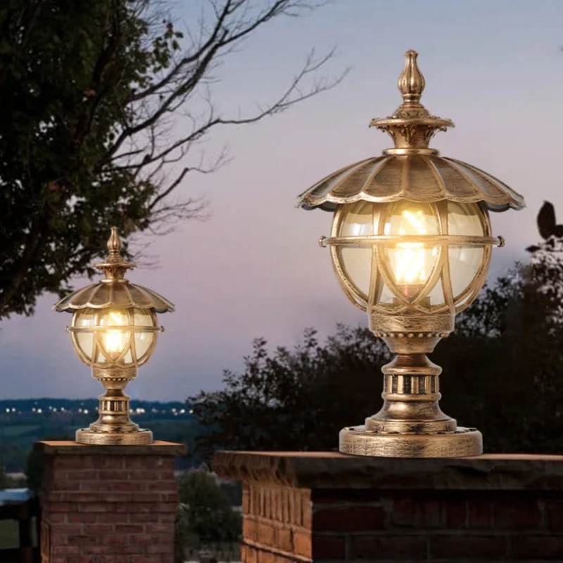 Винтажные ретро-фонари-столбики для улицы, водонепроницаемые IP65, для двора и сада, черные, для наружного освещения отелей, включая лампочки