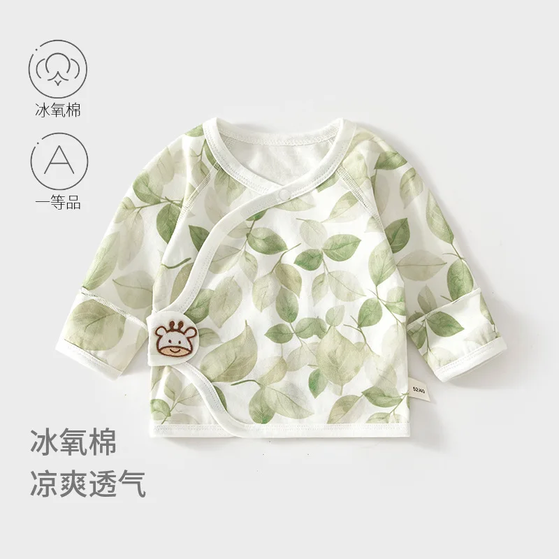 Детская рубашка с коротким рукавом, летняя бесшовная одежда для новорожденных из чистого хлопка, кимоно для новорожденных, жаккардовый комплект на первый месяц жизни