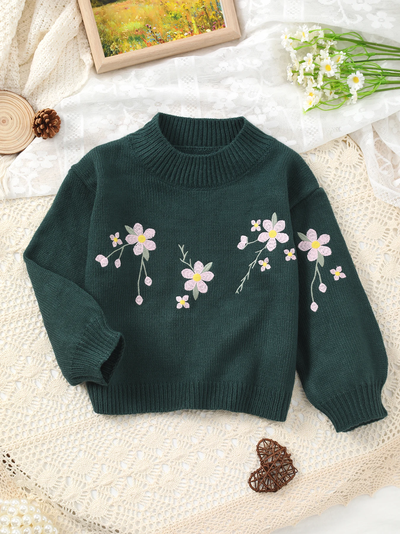 Вязаные свитера с цветочным принтом для девочек, Осенний пуловер для малышей, трикотажная одежда, хлопковая одежда, детская верхняя одежда, свитер с аппликацией, топы GY06041